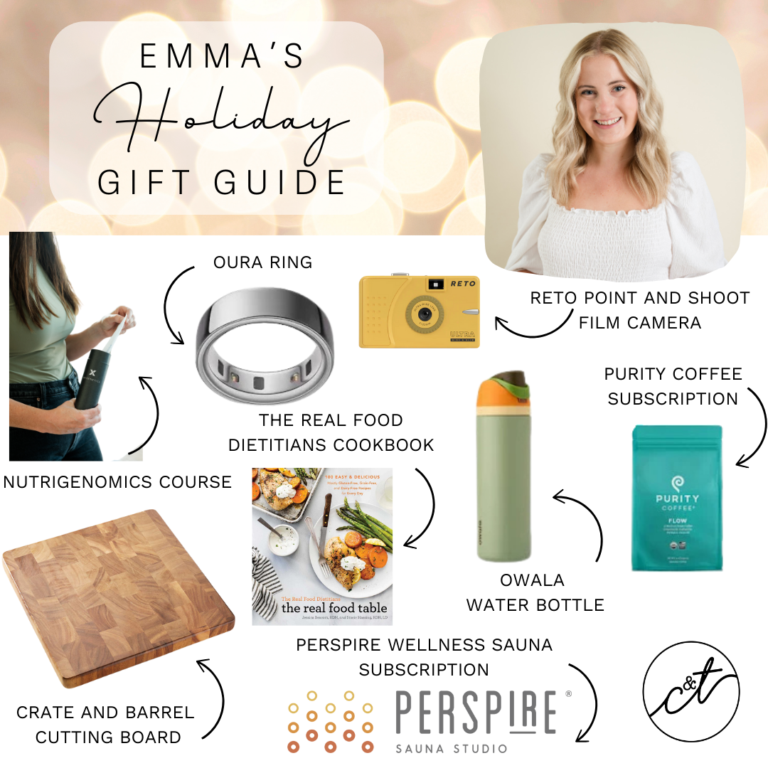 Our annual Holiday Gift Guide is here! A curated list of favorite gift ideas from our Registered Dietitians, this guide is packed with wellness-centered products that make the perfect gift for your loved ones (or yourself!) this holiday season.  From nutrition must-haves to self-care essentials, we’ve got something for everyone looking to stay healthy and happy during the holidays. Keep an eye out for our top picks and make this season a little brighter, one mindful gift at a time!