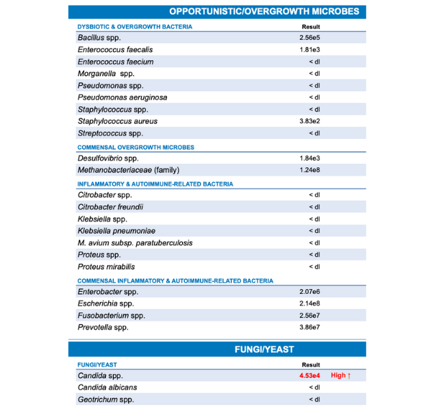 The results of the GI-MAP allow our dietitians to create personalized treatment protocols to address gut dysfunction based on which infections are urgent, which areas of the gut are already optimized, and which areas should be addressed after an infection is resolved.